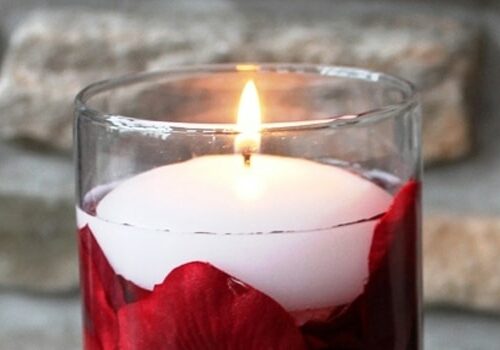 - Enciende la vela y concéntrate en el rostro de la persona amada, proyecta tus deseos, piensa en lo que deseas hacer con él y en vuestro futuro en común. Paralelamente coloca trocitos de la flor que hayas elegido en un recipiente pequeño y transparente, llénalo con agua y vierte unas gotas de tu perfume preferido. A continuación escribe el nombre completo de tu amado en la hoja de papel blanco y sobre su nombre escribe el tuyo completo también, dobla la hoja y colócala en el recipiente que utilizaste previamente.